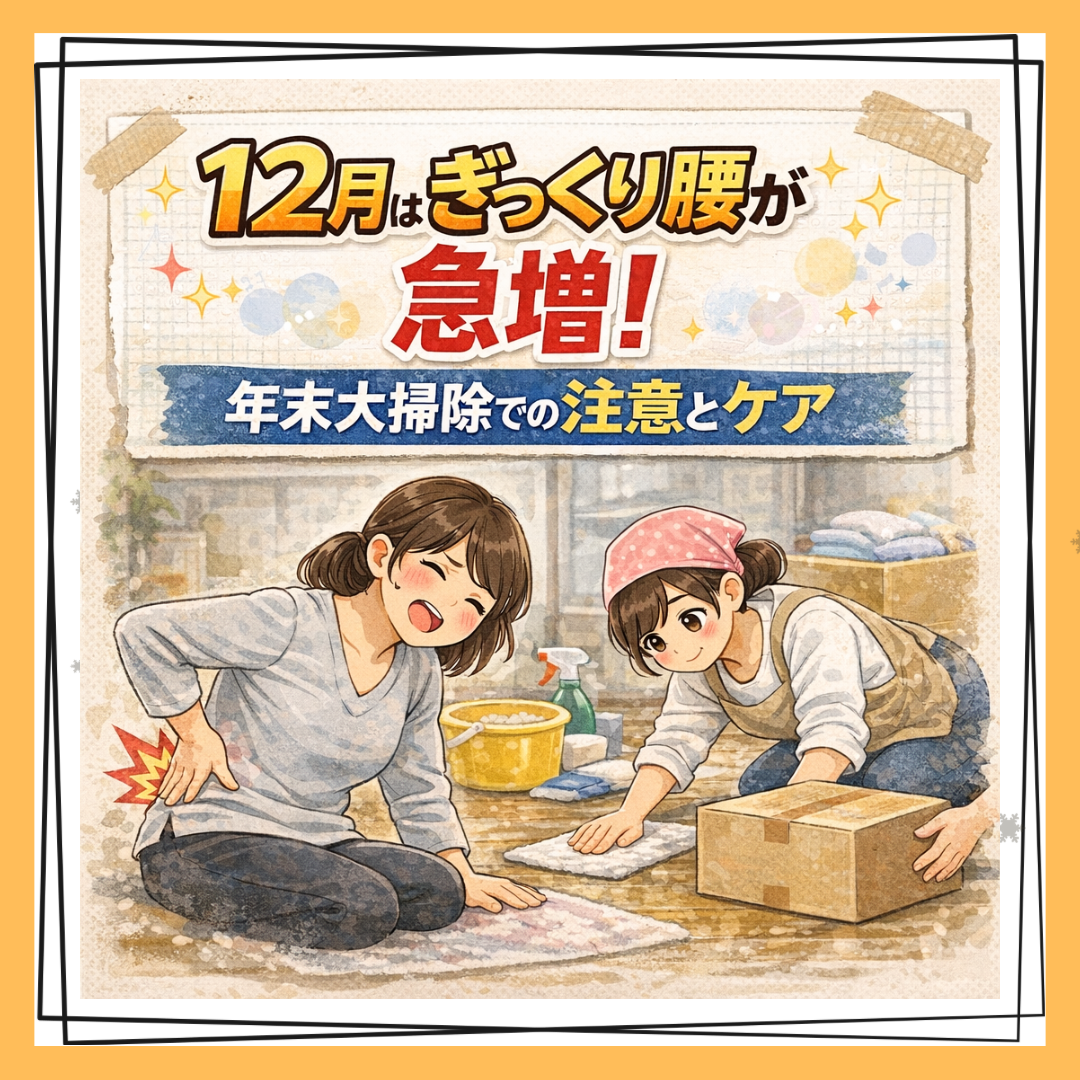 12月は寒さと忙しさが重なり、ぎっくり腰が起こりやすい条件がそろう季節です❄️