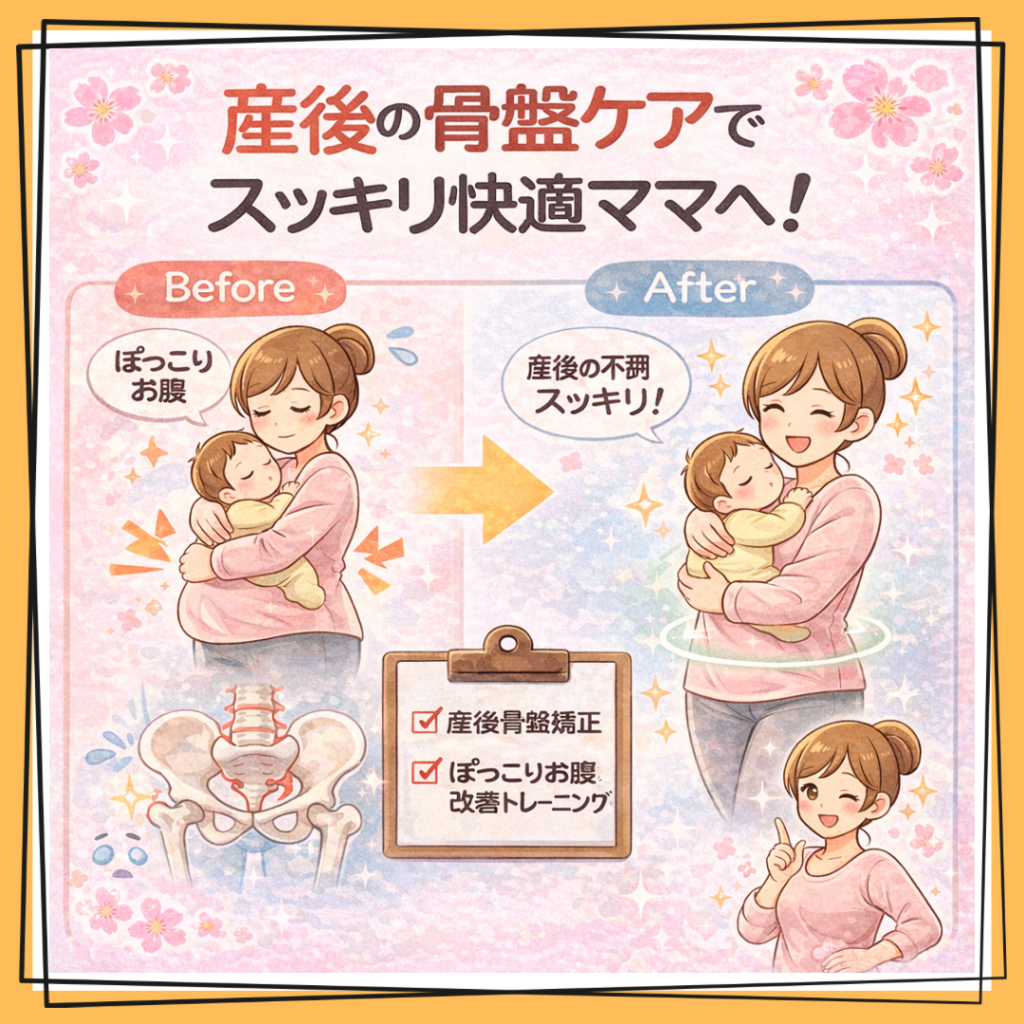 ✔ 産後骨盤矯正で骨盤の歪みを整え